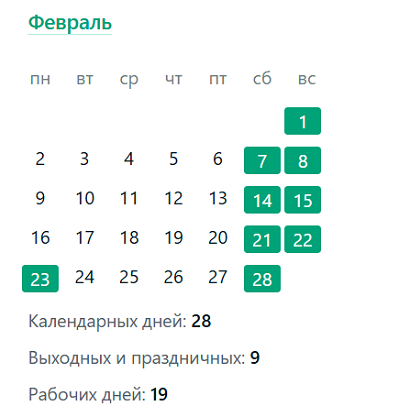 Таким образом, в феврале 2026 года будет 19 рабочих и 9 выходных дней (с учетом праздника).